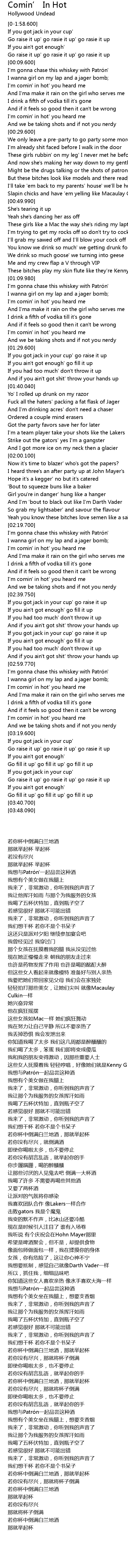 | [01:42.660] | Fuck all the haters' packing a fat flask of Jager |