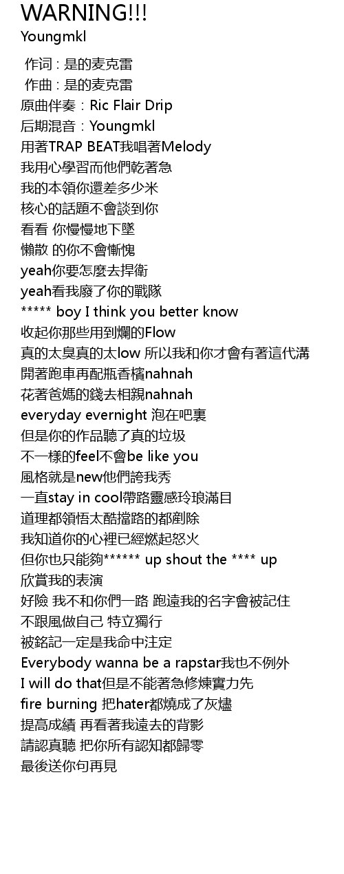 | [00:09.430] | 原曲伴奏:Ric Flair Drip |