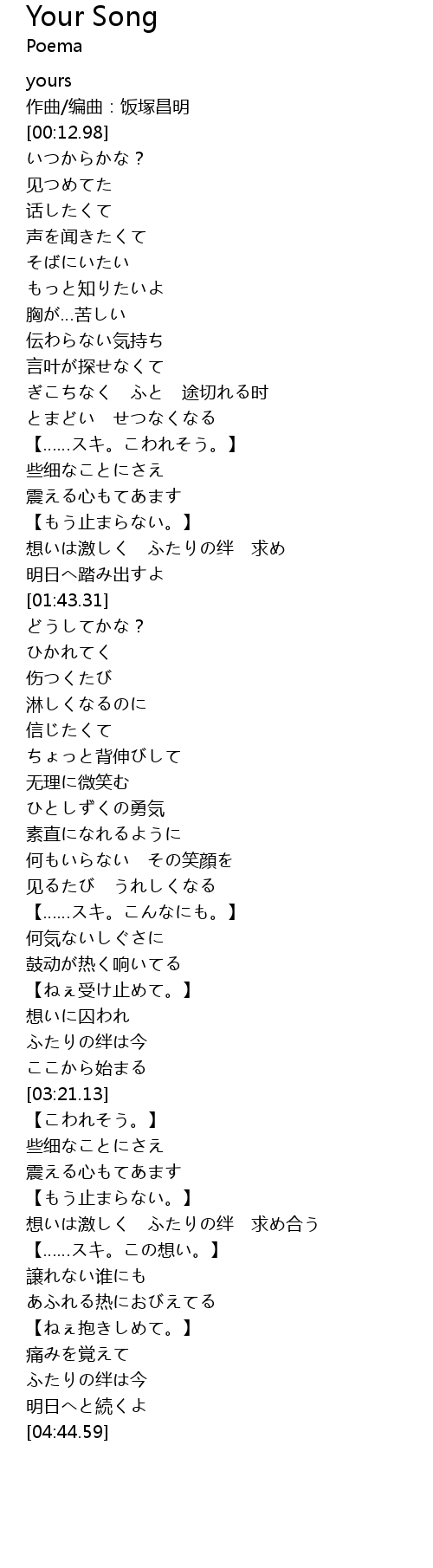 | [01:09.66] | 【……スキ。こわれそう。】 |