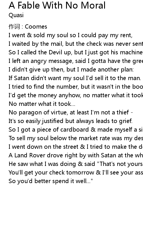 | If Satan didn' t want my soul I' d sell it to the man. | |