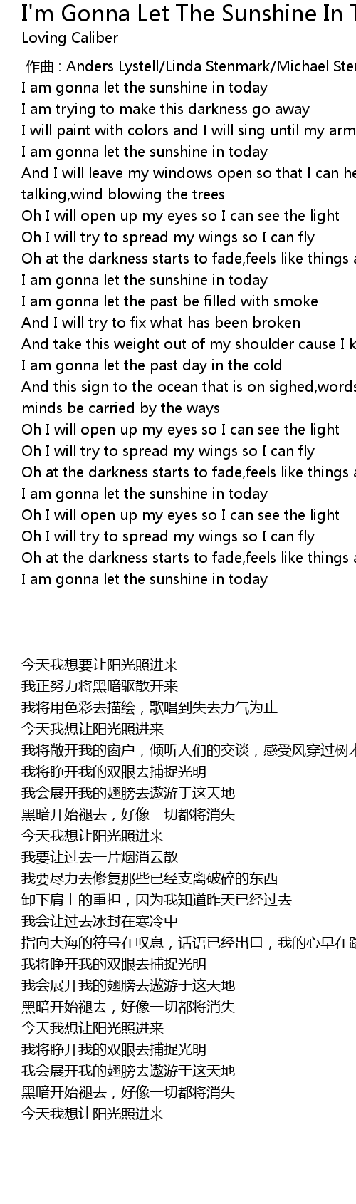 | 歌曲 | I'm Gonna Let The Sunshine In Today |