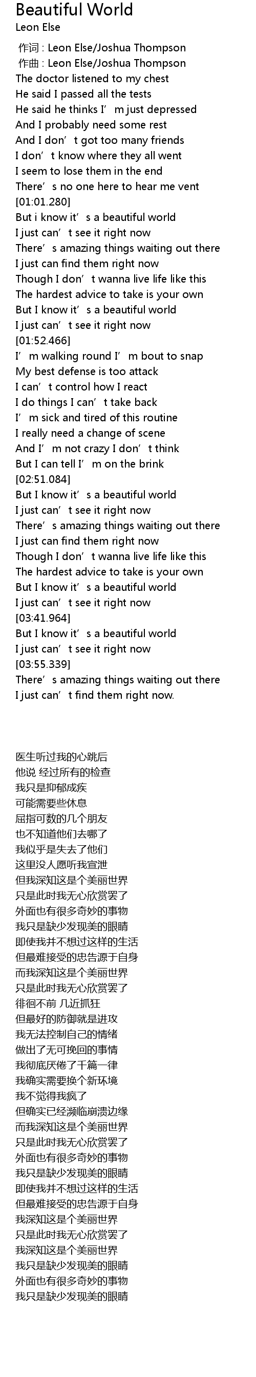 | [01:42.995] | 而我深知这是个美丽世界 |
