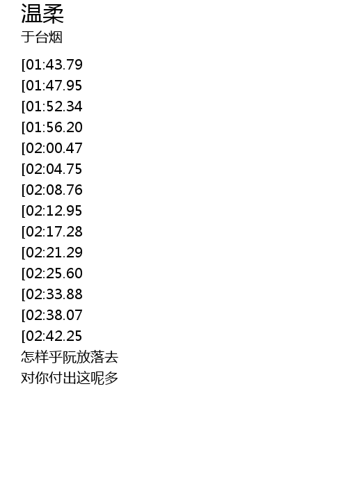 | [00:45.00][02:08.76] | 对你温柔这呢多 |