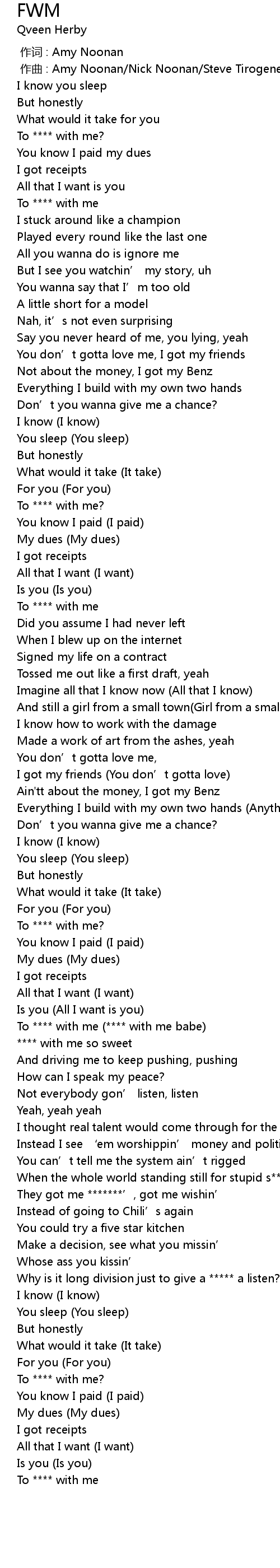 | [02:07.43] | To **** with me (**** with me babe) |