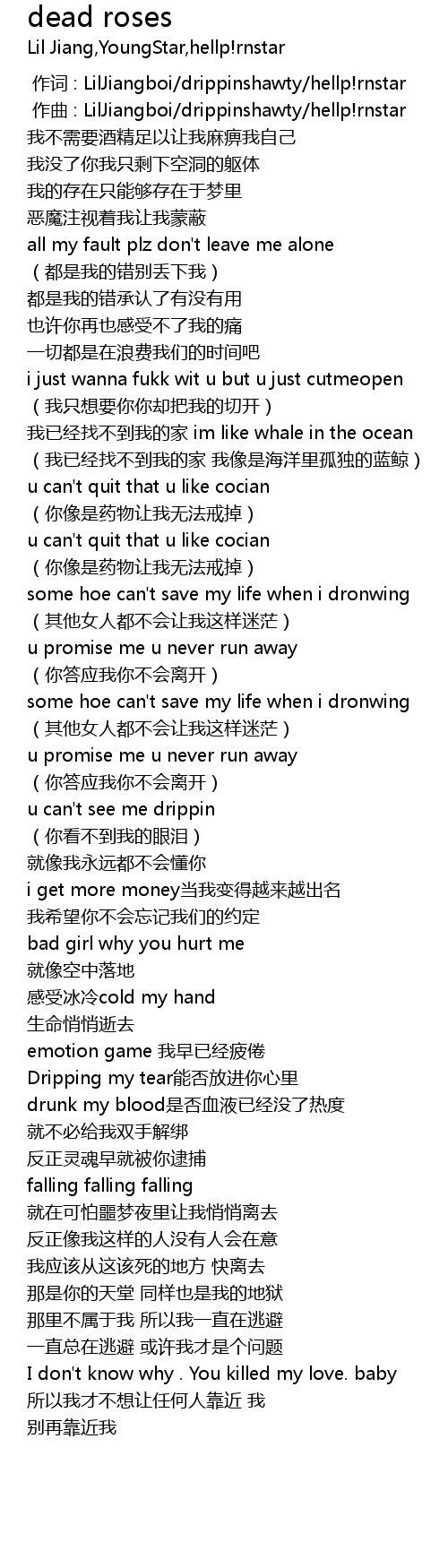 | [00:01.000] | zuo qu : LilJiangboi drippinshawty hellp! rnstar |