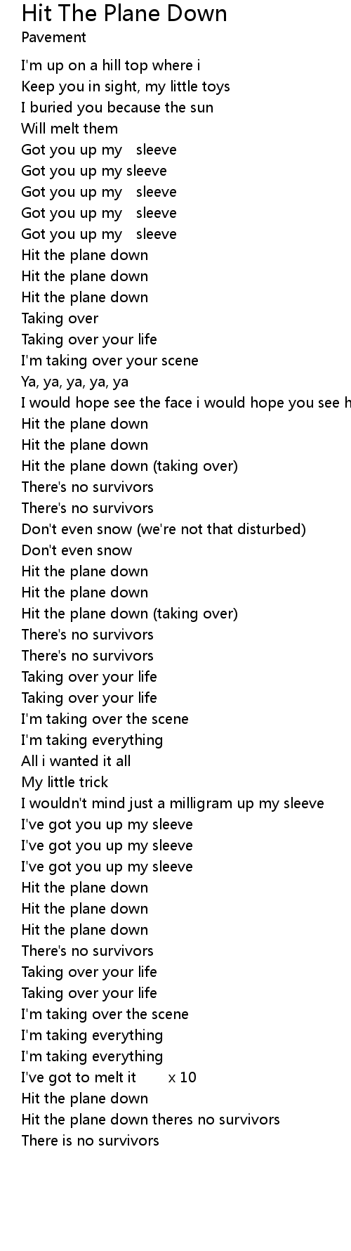 | 歌曲 | Hit The Plane Down |