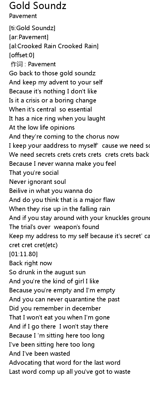 | [00:31.91] | We need secrets crets crets crets crets crets back right now |