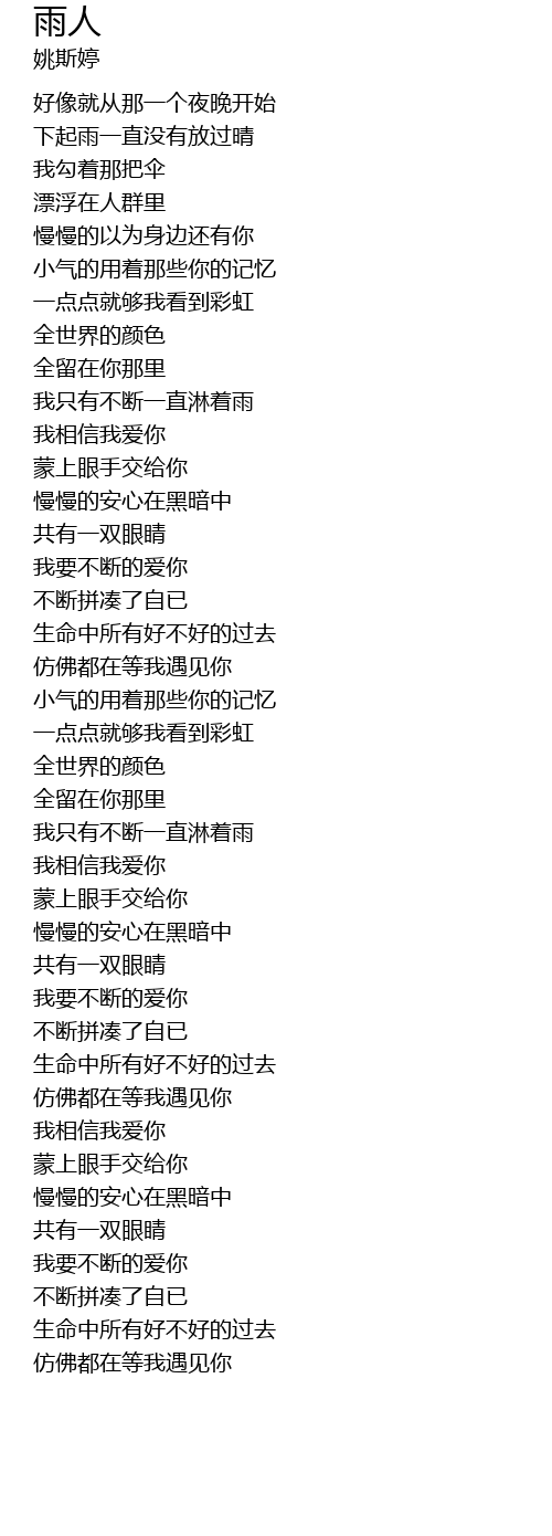 | [02:42.070] | wǒ zhǐ yǒu bù duàn yī zhí lín zhe yǔ |