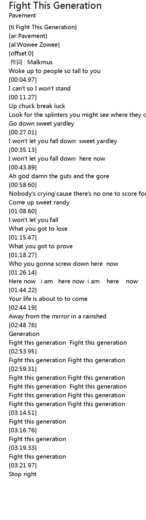 | [00:59.11] | Nobody's crying'cause there's no one to score for |