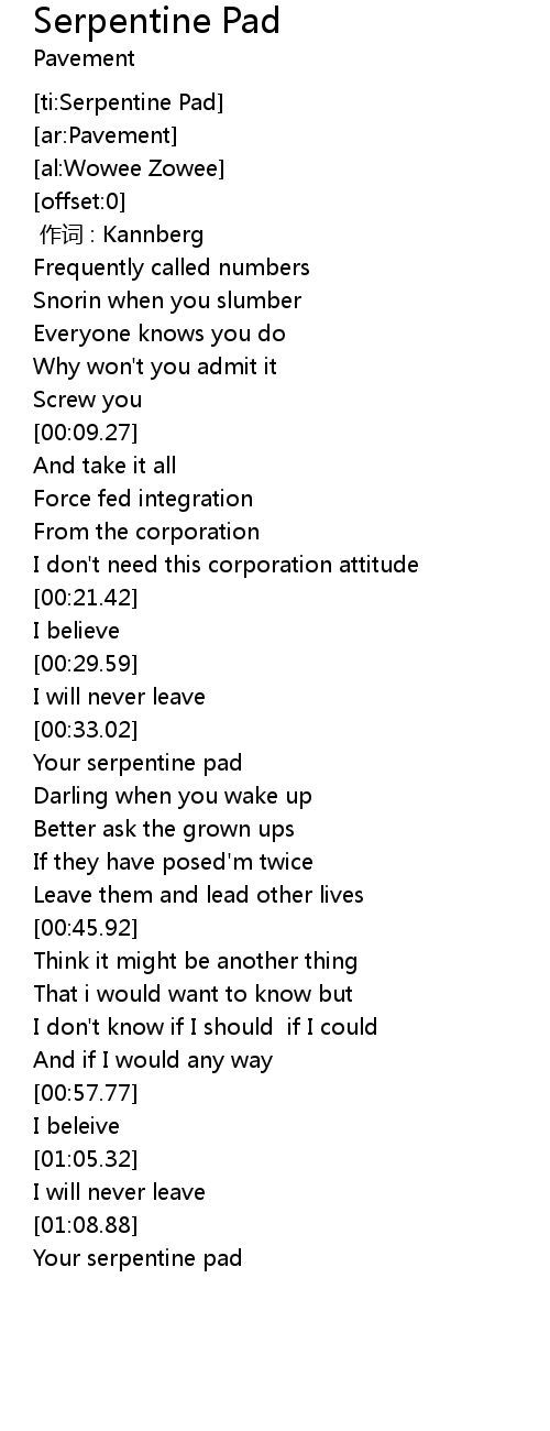 | [00:35.83] | Your serpentine pad |