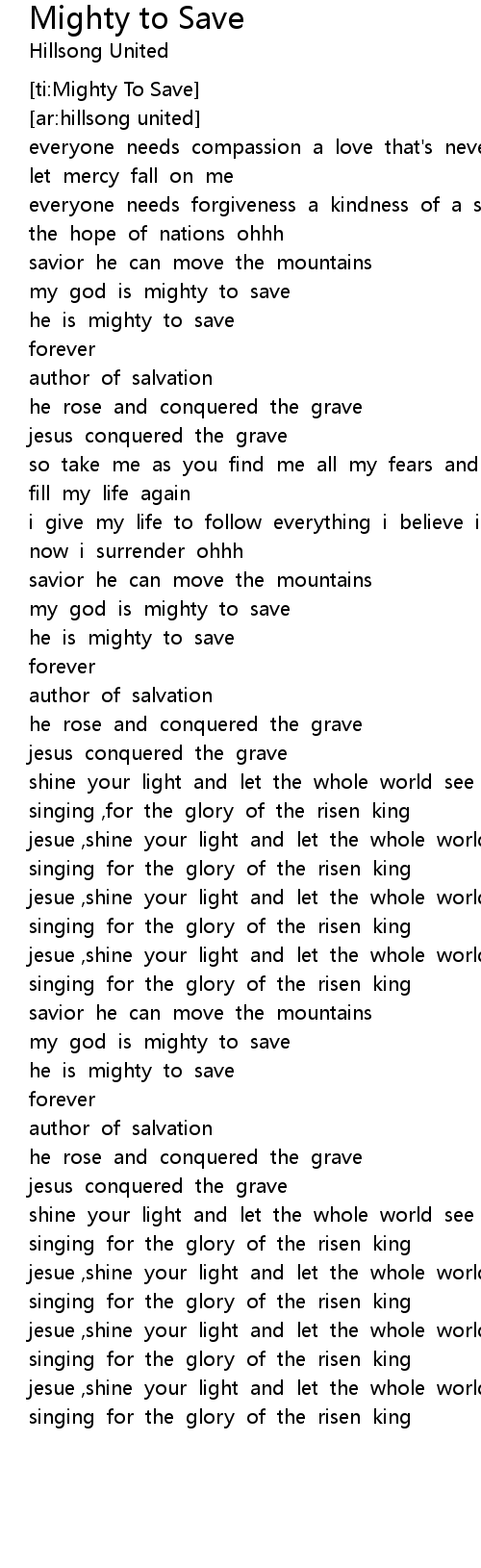 [ti:Mighty To Save] |
