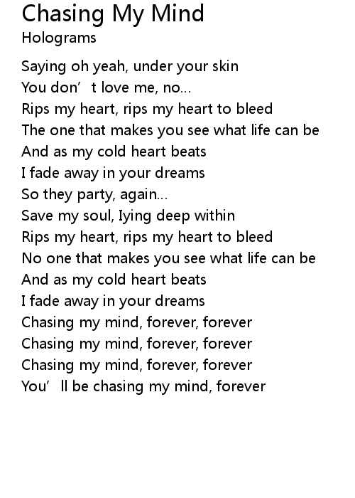 | [02:20.123] | You’ll be chasing my mind, forever |