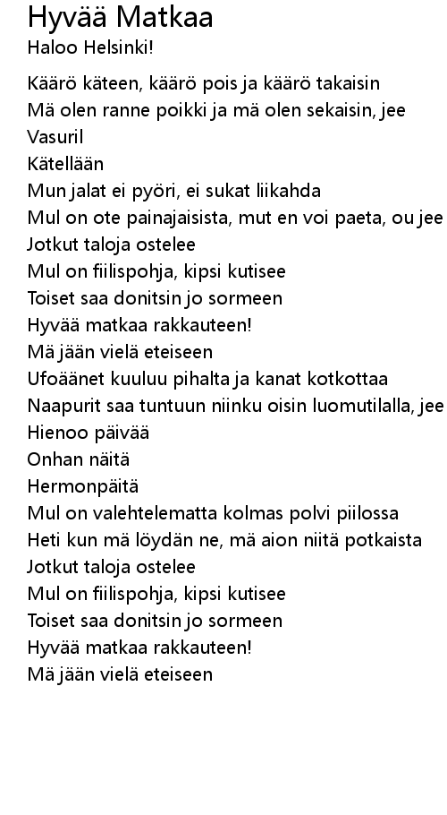 | 歌曲 | Hyvää Matkaa |