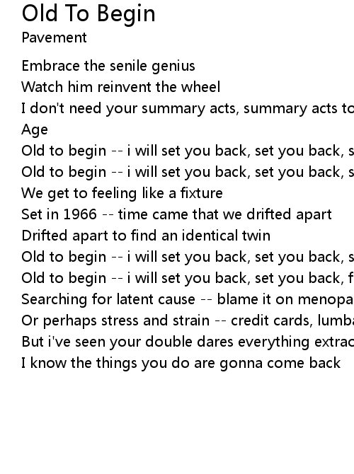 Old to begin -- i will set you back, set you back, set you |