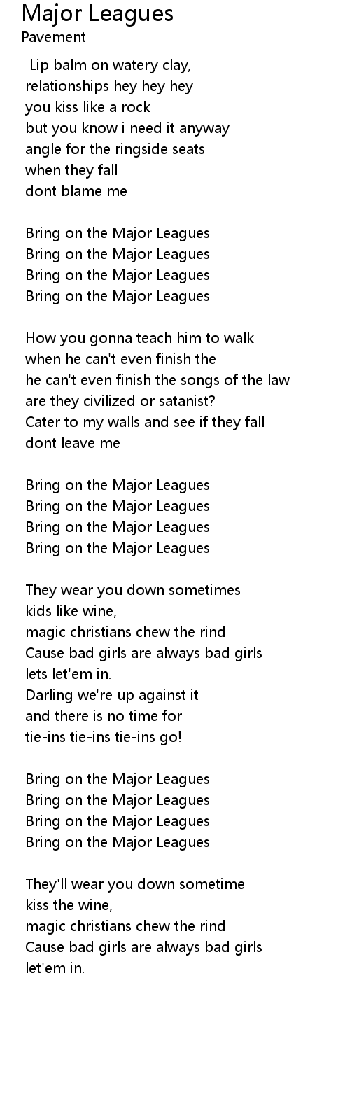 Major Leagues 歌词