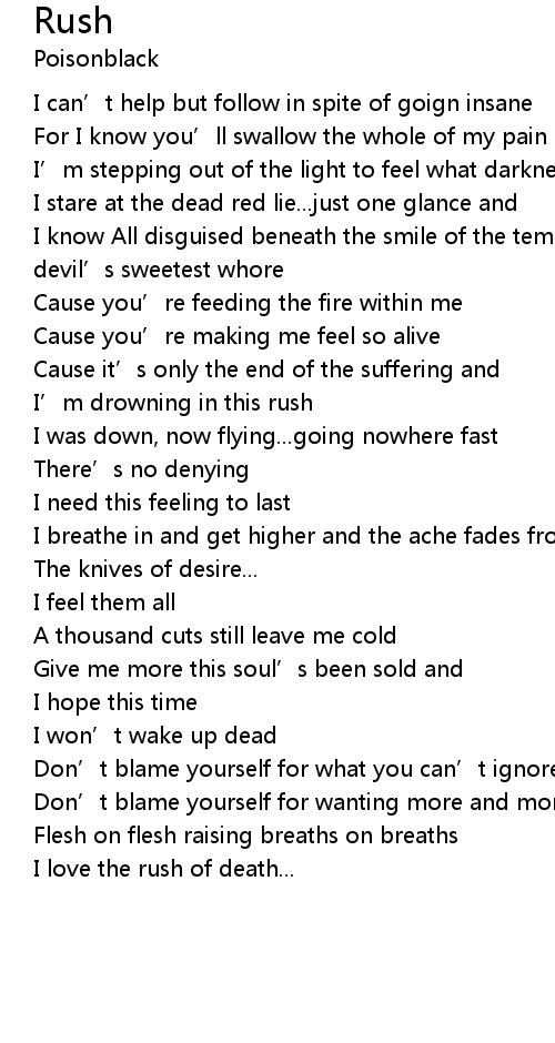 | I’m drowning in this rush | |