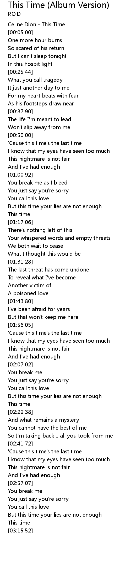 | [03:05.57] | But this time your lies are not enough |