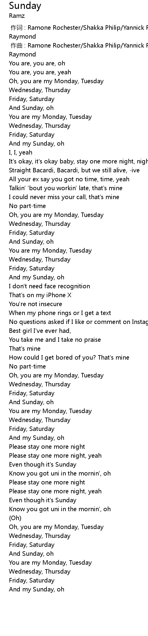 | [00:17.43] | And Sunday, oh |