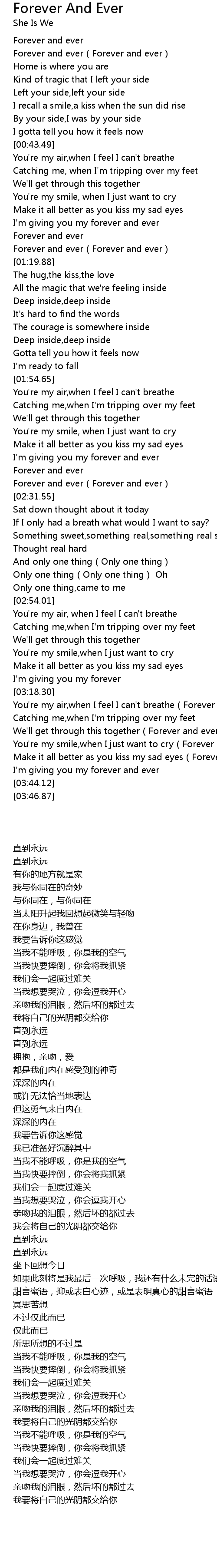 | [03:19.33] | You're my air,when I feel I can't breathe(Forever and ever) |