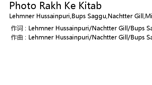 | [00:00.000] | 作曲 : Lehmner Hussainpuri/Nachtter Gill/Bups Saggu/Miss Pooja |
