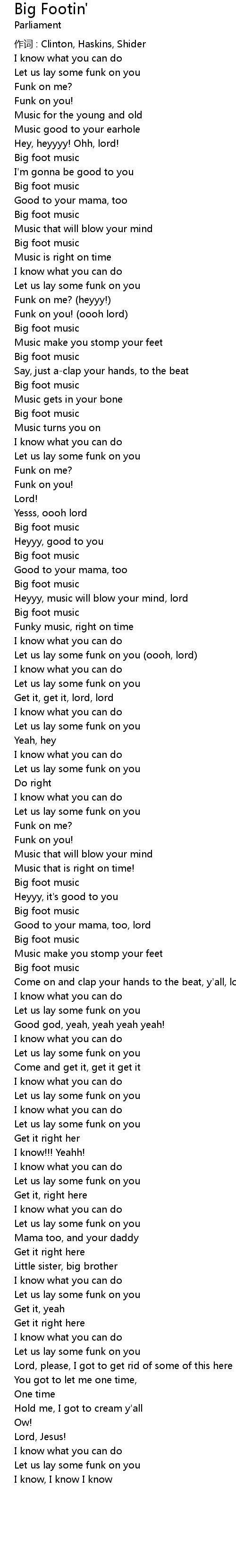 | 作词 : Clinton, Haskins, Shider | |