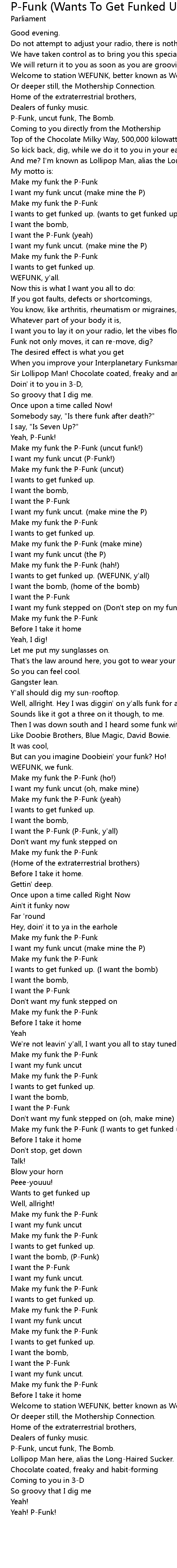 Make my funk the P-Funk (uncut funk!) |
