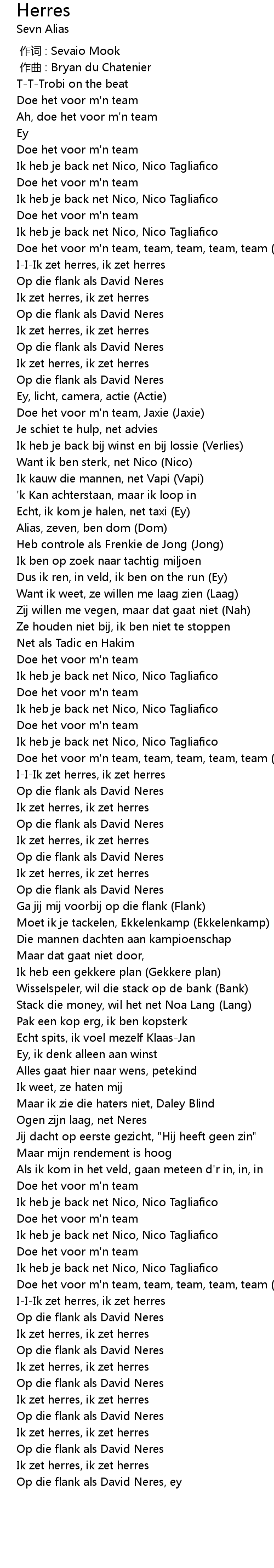 | [02:25.22] | Doe het voor m'n team, team, team, team, team (Hey, hey) |