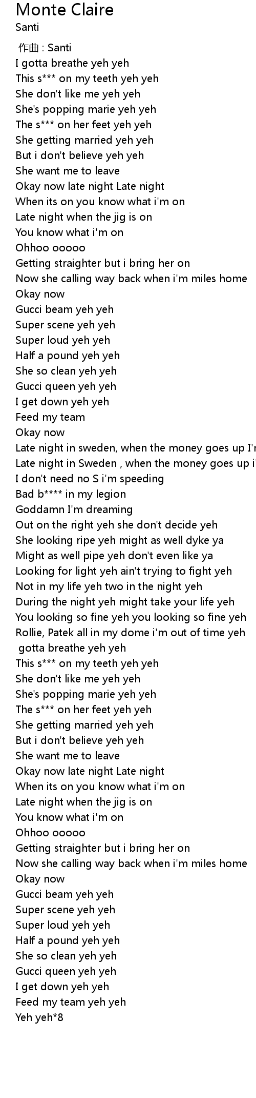 | [00:16.77] | This s*** on my teeth yeh yeh |