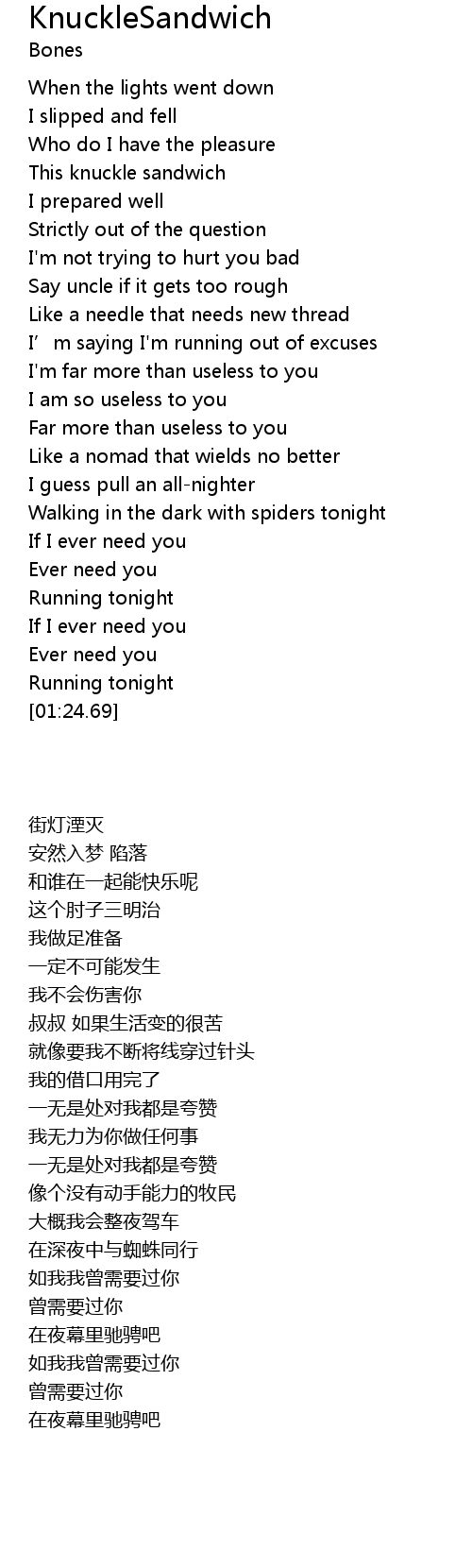| [01:21.89] | Running tonight |