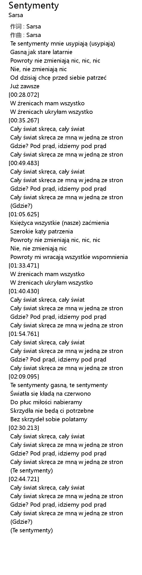 | [02:30.622] | Cały świat skręca, cały świat |