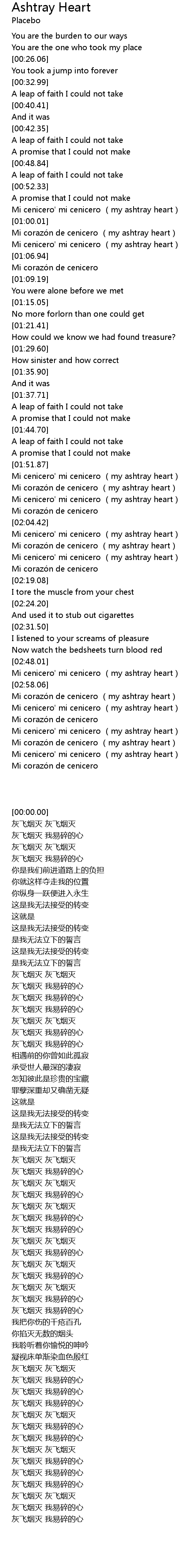 | [00:56.77] | Mi cenicero' mi cenicero my ashtray heart |