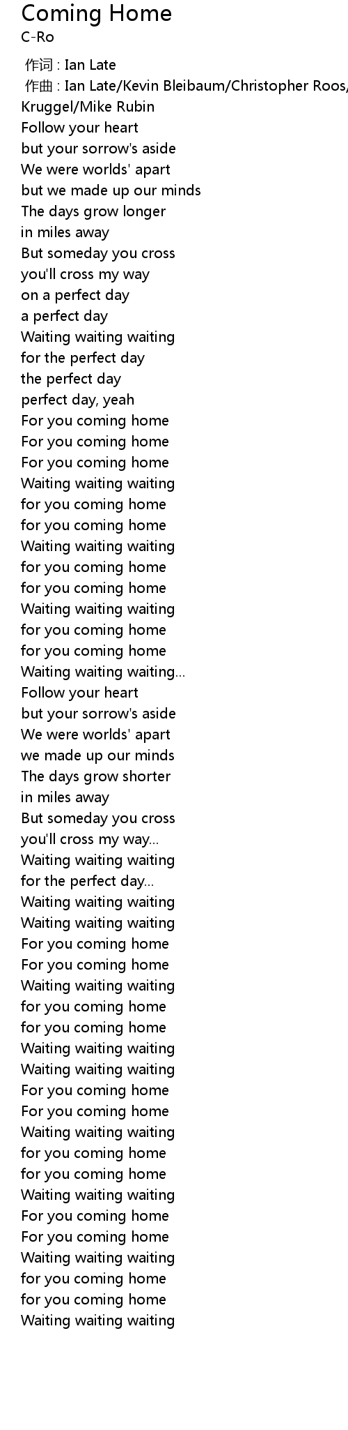 | [00:34.12] | For you coming home |