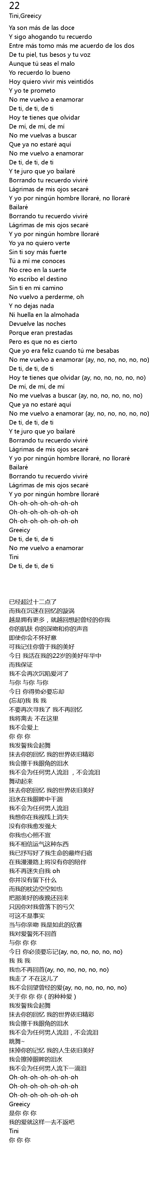 | [01:34.69] | Hoy te tienes que olvidar ay, no, no, no, no, no |