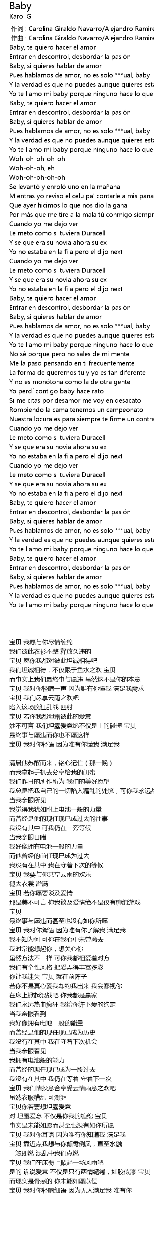 | [00:31.59] | Yo te llamo mi baby porque ninguno hace lo que tú haces por mí |