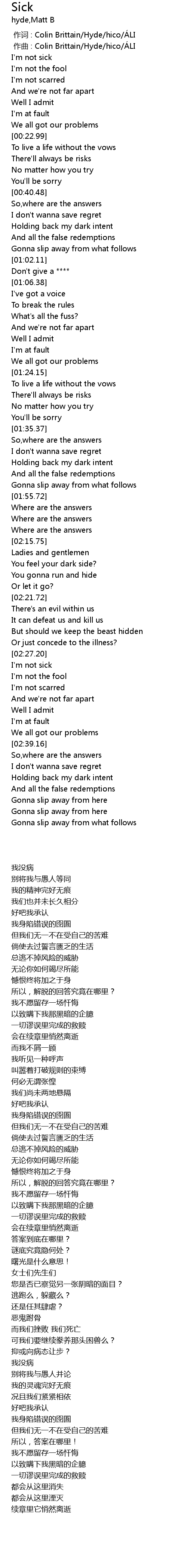 | [00:11.33] | I' m not sick |