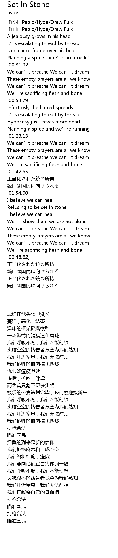 | [02:28.85] | We can' t breathe We can' t dream |