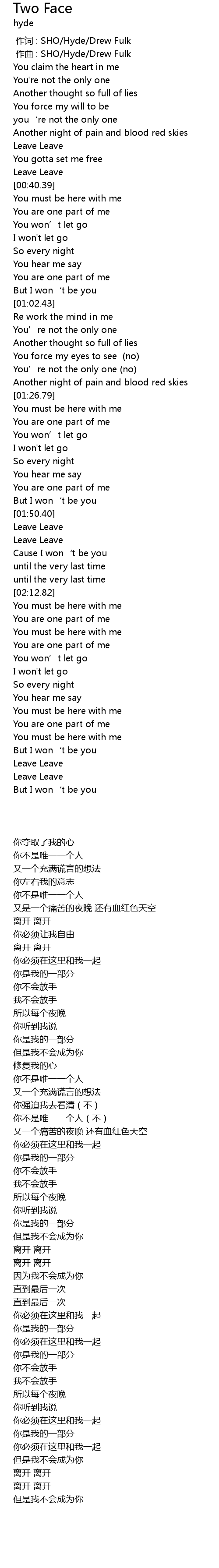 | [00:01.000] | zuo qu : SHO Hyde Drew Fulk |
