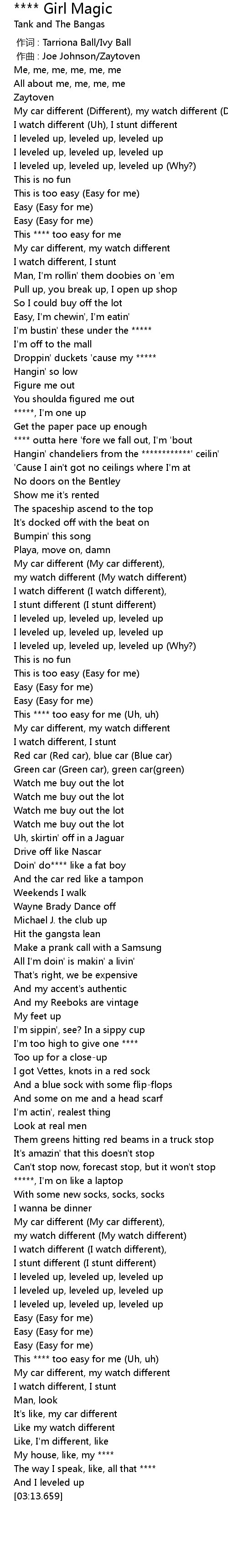 | [00:47.373] | Droppin' duckets 'cause my ***** |