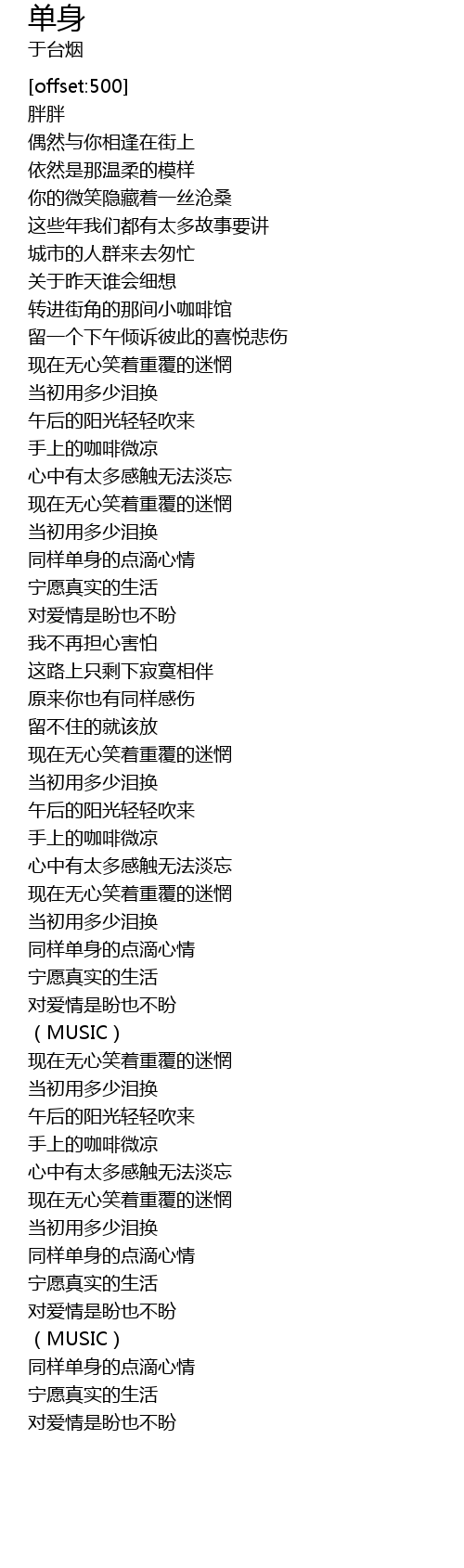 | [00:55.28] | 留一个下午倾诉彼此的喜悦悲伤 |