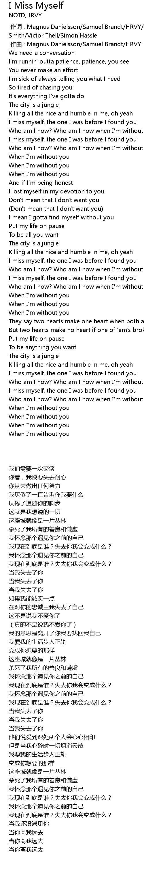| [00:35.50] | I miss myself, the one I was before I found you |