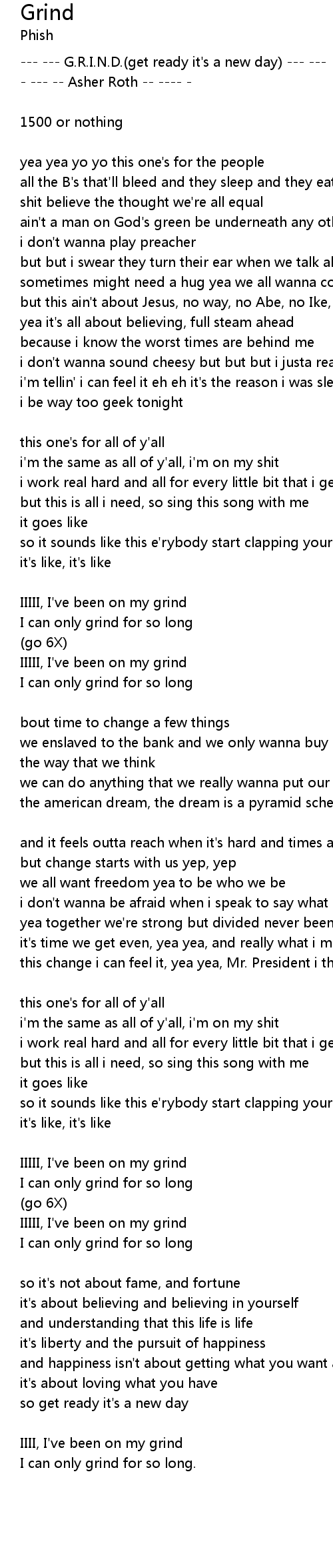 | --- --- G.R.I.N.D.(get ready it's a new day) --- --- | |