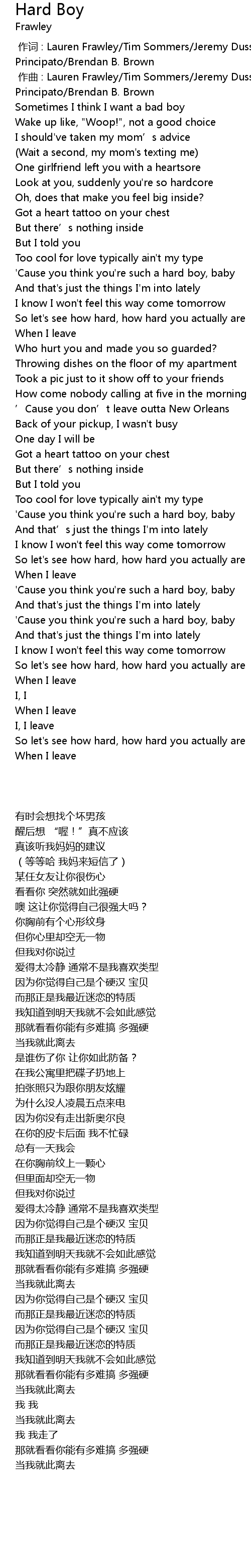 | [01:40.81] | ' Cause you think you' re such a hard boy, baby |