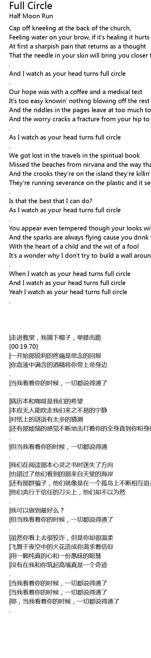 And I watch as your head turns full circle |