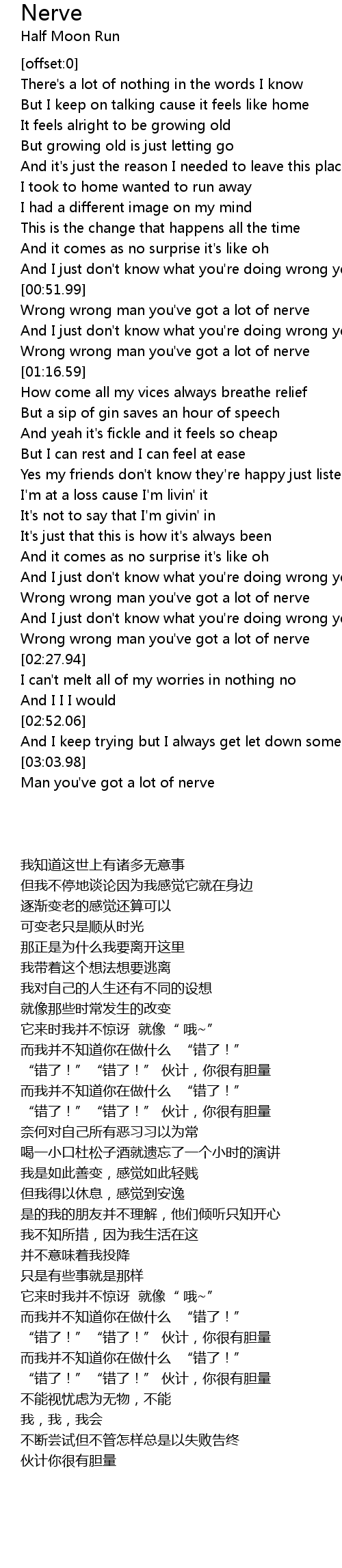 Wrong wrong man you've got a lot of nerve |
