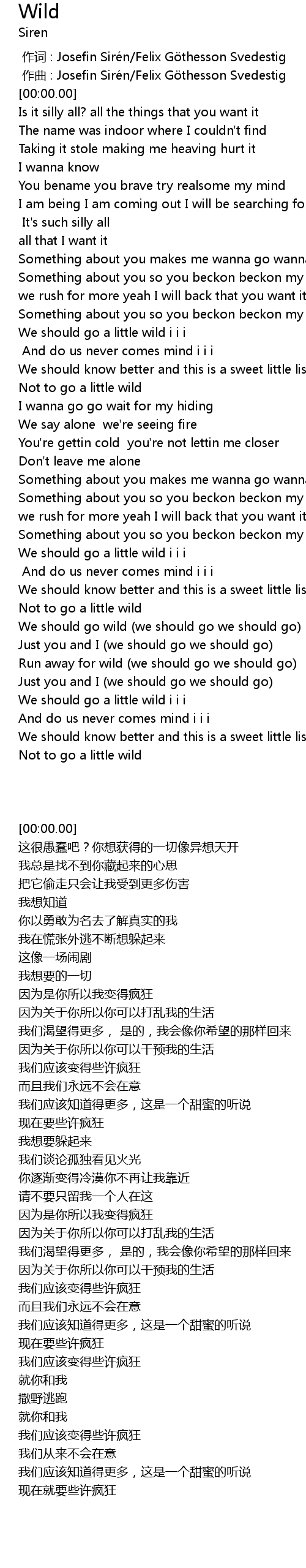 | [00:00.000] | 作词 : Josefin Sirén/Felix Göthesson Svedestig |
