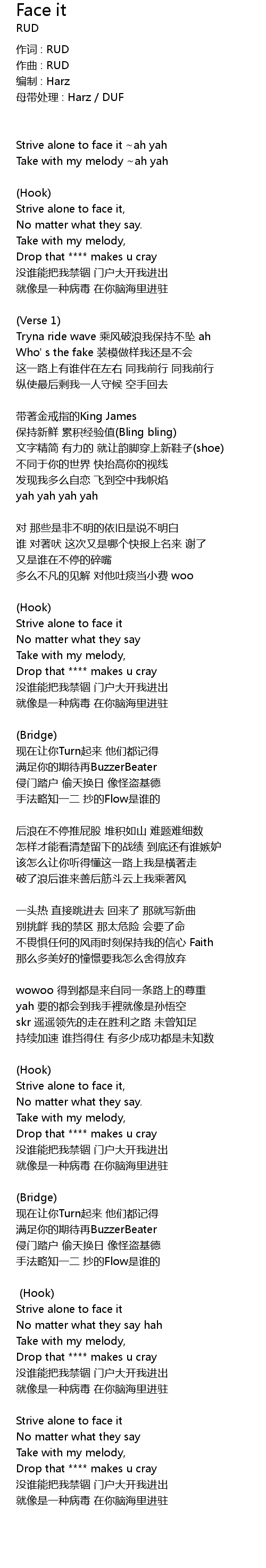 | 母带处理 : Harz / DUF | |