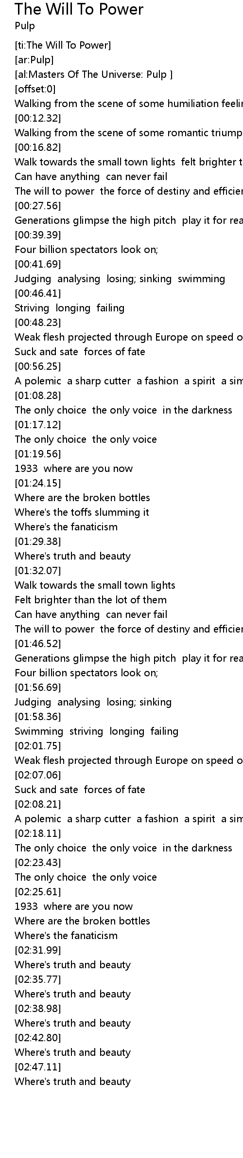 [ti:The Will To Power] |