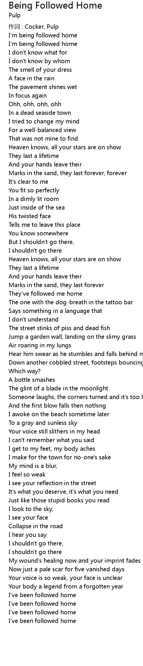 | I' m being followed home | |