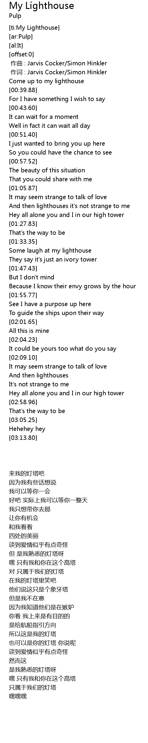 | [00:01.00] | zuò cí : Jarvis Cocker Simon Hinkler |