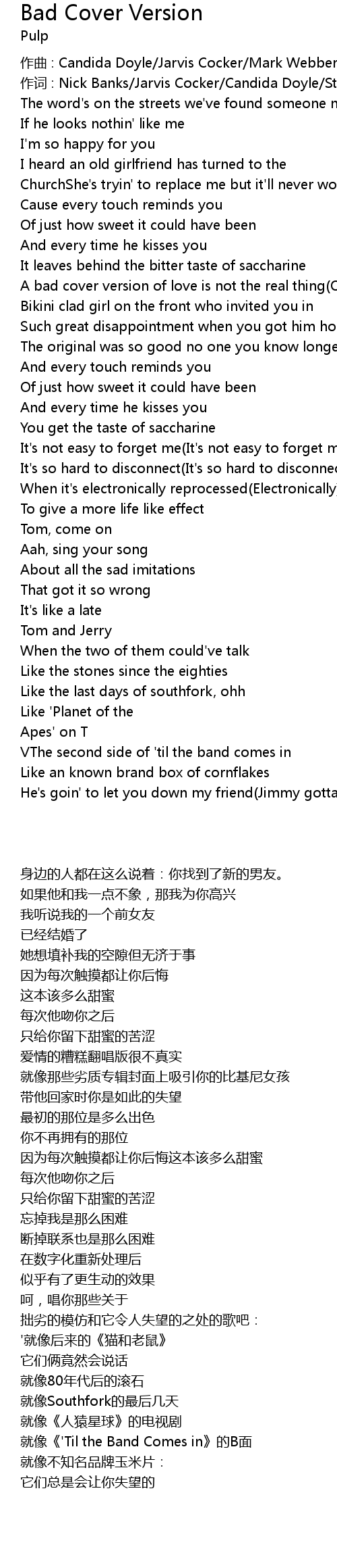 | 歌曲 | Bad Cover Version |
